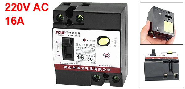 Product Name Earth Leakage Circuit Breaker Model No. FLM18L-60 Rated Voltage 220V AC, 50Hz Rated Current 16A Poles 2 Pole Rated Residual Operating Current 30mA Residual Current Off-time 0.1s Mounting Hole Diameter 5.5mm/ 0.22" Total Size (Approx) 78 x 70 x 42mm / 3" x 2.7" x 1.65"(L*W*H) Main Color Black Material Plastic, Electronic Parts Net Weight 180g Package Content 1 x Earth Leakage Circuit Breaker