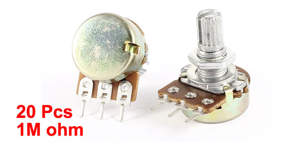 Product Name Potentiometer Resistance Value 1M ohm Power AC 220V 6A Adjustment Type Top Adjustment Type Single Linear(Type B) Features Knurled Shaft Shaft Diameter 6mm / 0.2" Shaft Length 8mm / 0.3" Mounting Thread Diameter 7mm / 0.3" Base Size 16 x 8mm / 0.63" x 0.31"(D*H) Total Height 24mm/0.94" Material Metal, Electronic Parts,Carbon Film Net Weight 127g Package 20 x Potentiometer - Reviews