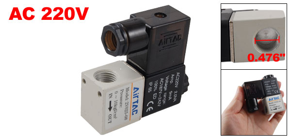 Type 2 Way 2 Position Single Head Type Power Consumption AC 220V, 2.0VA Voltage Range AC 187V-242V Current 9mA Working Pressure 0-10kgf/cm² Joint Bore Size(Approx) Inlet=Outlet=PT1/4 Threaded Port Size(Approx) Air Inlet=Air Outlet=1.21cm / 0.476" Hex Connector Inner Dia(Approx) 1.0.8cm / 0.425“ Overall Size(Approx) 6.3 x 2 x 5.6cm/ 2.5" x 0.8" x 2.2" (L*W*H) Color See the Picture External Materila Plastic, Metal Weight 145g Package Content 1 x Solenoid Valve - Reviews