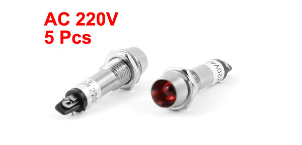AC 220V 2 Pins 8mm Terminals Red LED Light Signal Indicator Lamp 5 Pcs