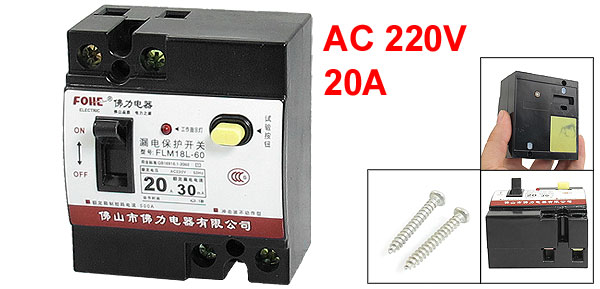 Product Name Earth Leakage Circuit Breaker Model No. FLM18L-60 Rated Voltage 220V AC, 50Hz Rated Current 20A Poles 2 Pole Rated Residual Operating Current 30mA Residual Current Off-time 0.1s Mounting Hole Diameter 5.5mm/ 0.22" Total Size (Approx) 78 x 70 x 42mm / 3" x 2.7" x 1.65"(L*W*H) Main Color Black Material Plastic, Electronic Parts Net Weight 179g Package Content 1 x Earth Leakage Circuit Breaker