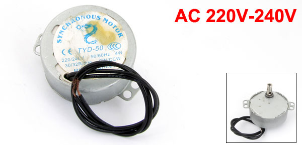 Product Name Fan Synchronous Motor Model TYD50 Direction CW/CCW Voltage AC 220-240V Frequency 50/60Hz Max Power 4W Speed 30/32RPM Body Size 49 x 21mm/ 1.9" x 0.8"(D*H) Shaft Size 7 x 19mm/ 0.28" x 0.75"(D*L) Thread Hole Diameter 3mm/ 0.12" Mount Hole Diameter 4mm/ 0.16" Cable Length 24cm/ 9.4" Main Material Metal Color As Picture shown Net Weight 81g Package Content 1 x Fan Synchronous Motor - Reviews