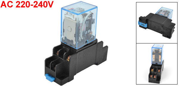 Product Name Power Relay + Socket Relay Model No. MY2N-J Material Plastic Color(external) Black, Clear Blue Coil Voltage AC 220-240V Contact Voltage 5A 240V AC