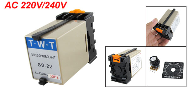 Product Name AC Motor Speed Controller Model SS-22 Material Plastic, Electronic Part Power Supply AC 220V/240V Frequency 50HZ Current 5A Motor Power 6-90W Speed Adjustable Range 90-1700 RPM Potentiometer