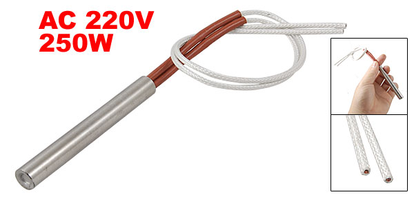 Product Name Cartridge Heater Material Stainless Steel, PVC, Nylon Rated Voltage AC 220V Power 250W Heater Size (Approx.) 9.5 x 75mm / 0.37" x 2.9" (D * L ) Wire Length (Approx.) 27.5cm / 10.8" Color As Picture Shown Weight 34g Package Content 1 x Cartridge Heater - Reviews