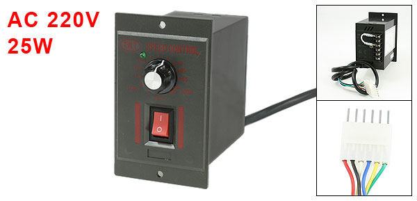 Product Name Motor Speed Controller Model US52-25W Material Plastic, Electrical Material Connector Type 6 Pins Rated Value AC 220V, 50HZ Power 25W Size 10 x 5.9 x 9.8cm/3.9'' x 2.3'' x 3.9'' (L*W*H) Fixing Hole Diameter 4mm/0.16" Fixing Hole Center Distance 9cm/3.5" Cable Length 50cm/20'' Color Gray Net Weight 204g Package Content 1 x Motor Speed Controller - Reviews