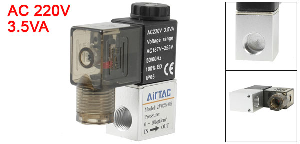 AC 220V 3.5VA 1/4"PT Thread 2 Position 2 Way Pneumatic Electric Solenoid Valve