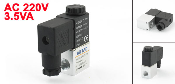 AC 220V 3.5VA 1/4"PT Two Position Two Way Pneumatic Gas Air Solenoid Valve