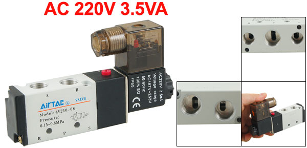 AC 220V 3.5VA Single Coil 2 Positions 5 Way Solenoid Valve 4V210-08