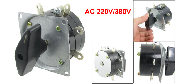 Product Name Changeover Switch Model No. KDH-25-1-8 Ui 500V Ith 25A Rated Voltage AC 220V/380V Rated Current 25A Positions 8 Positions Mounted Hole Dia 5.5mm / 0.22" Terminals 9 Body Diameter 73mm / 2.9" Overall Size(Approx.) 99 x 83mm / 3.9" x 3.3"(Max.Dia.*H) External Material Plastic Color Black Net Weight 296g Package Content 1 x Changeover Switch - Reviews