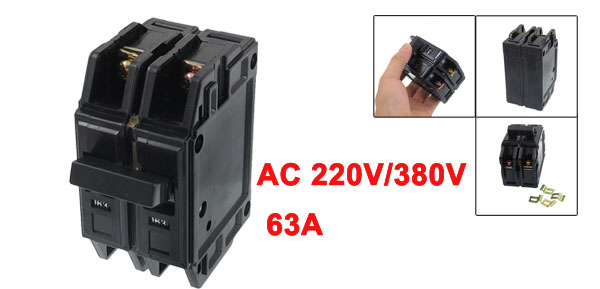 Product Name Moulded Case Circuit Breaker Model No. DZ12-2P Poles 2P Rated Voltage AC 220V/380V, 50Hz Rated Current 63A Breaking Capacity of Short Circuit 3kA Overall Size(Approx.) 95 x 47 x 75mm / 3.7" x 1.9" x 3"(L*W*H) Casing Material Plastic Net Weight 237g Package Content 1 x Moulded Case Circuit Breaker - Reviews