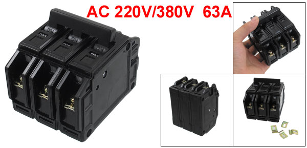 Product Name Moulded Case Circuit Breaker Model No. DZ12-3P Poles 3P Rated Voltage AC 220V/380V, 50Hz Rated Current 63A Breaking Capacity of Short Circuit 3kA Overall Size(Approx.) 95 x 72 x 75mm / 3.7" x 2.8" x 3"(L*W*H) Casing Material Plastic Net Weight 359g Package Content 1 x Moulded Case Circuit Breaker - Reviews