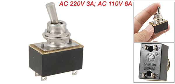 Product Name Toggle Switch Rating AC 220V 3A; AC 110V 6A Pin Number 4 Pins Position 2 Position(On/On) Type DPDT(Latching) Screw Diameter 11mm Total Size(Approx.) 4.6 x 2.7 x 1.8cm / 1.8" x 1.1" x 0.7"(L*W*T) Material Plastic & Metal Color Black & Silver Tone Weight 18.6g Package Content 1 x Toggle Switch - Reviews