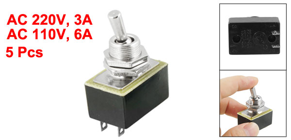 AC 220V 3A 110V 6A ON/OFF 2 Position SPST 2 Pins Toggle Switch 5 Pcs