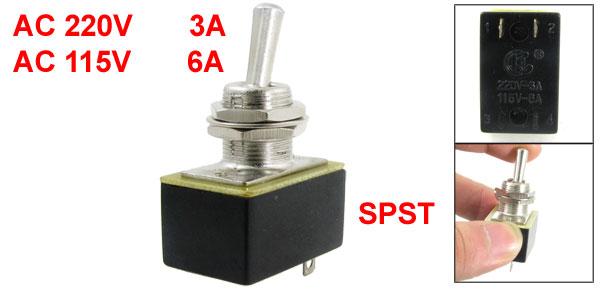 AC 220V 3A 115V 6A ON/OFF 2 Position 1P1T SPST 2 Terminals Toggle Switch