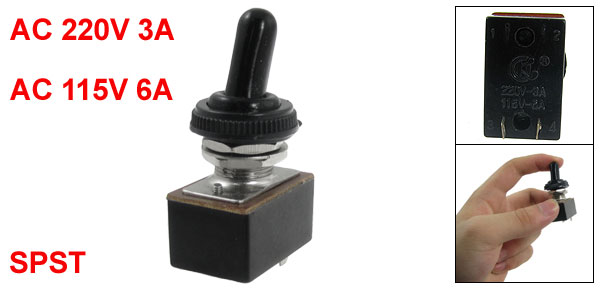 AC 220V 3A 115V 6A ON/OFF 2 Position SPST 2 Pins Toggle Switch w Waterproof Boot