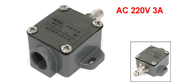 Thread Dia 12mm/0.5" Main Color Gray Brand DMiotech Action Type Momentary Actuator Type Roller Plunger Country of Manufacture CHINA Model JW2-11H Switch Size 77 x 58 x 22mm/3" x 2.3" x 0.9"(L*W*H) Material Plastic, Metal, Electric Parts Contact Type SPDT Product Name Limit Switch Net Weight 81g Package Content 1 x Limit Switch Rating AC 220V 3A Button Size 8 x 5mm/0.32" x 0.2"(D*L) - Reviews