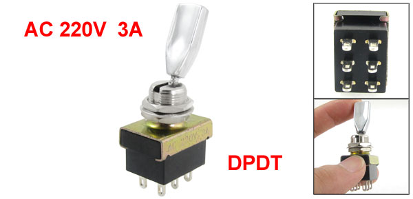 AC 220V 3A ON/OFF/ON 3 Way 2P2T DPDT 6 Solder Lug Terminals Toggle Switch
