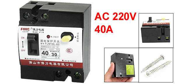 Product Name Earth Leakage Circuit Breaker Model No. FLM18L-60 Rated Voltage 220V AC, 50Hz Rated Current 40A Poles 2 Pole Rated Residual Operating Current 30mA Residual Current Off-time 0.1s Mounting Hole Diameter 5.5mm/ 0.22" Total Size (Approx) 78 x 70 x 42mm / 3" x 2.7" x 1.65"(L*W*H) Main Color Black Material Plastic, Electronic Parts Net Weight 179g Package Content 1 x Earth Leakage Circuit Breaker