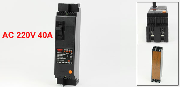 Product Name Earth Leakage Circuit Breaker Model No. DZ15LE-40/290 Rated Voltage AC 220V Rated Current 40A Number of Poles 2P+N Rated Leakage Action Current 30mA Rated Leakage Not Action Current 15mA Breaking Capacity of Short Circuit 3KA Operating Time <0.1s Trip Type Mechanical Overall Size(Approx.) 215 x 53 x 67mm / 8.5" x 2.1" x 2.6"(L*W*H) Material Plastic, Electronic Parts Net Weight 547g Package Content 1 x Earth Leakage Circuit Breaker