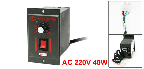 Product Name Motor Speed Controller Model US52-40W Material Plastic, Electrical Material Connector Type 6 Pins Rated Value AC 220V, 50HZ Power 40W Size 10 x 5.9 x 9.8cm/3.9'' x 2.3'' x 3.9'' (L*W*H) Fixing Hole Diameter 4mm/0.16" Fixing Hole Center Distance 9cm/3.5" Cable Length 50cm/20'' Color Gray Net Weight 214g Package Content 1 x Motor Speed Controller - Reviews