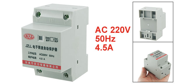 Product Name Electronic Circuit Breaker Feature 35mm DIN Rail Mount, LED Indicator Voltage AC 220V, 50Hz Current 4.5A Poles 2P Overall Size 79 x 49 x 66mm/3.1" x 1.9" x 2.6" (L*W*T) Color Gray External Material Plastic Weight 114g Package Content 1 x Electronic Circuit Breaker - Reviews