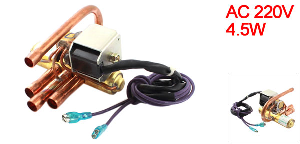 Product Name Reversing Solenoid Valve Model No SHF(L)-4H-23U Type 4-Way Max Working Pressure 3Mpa Solenoid Coil Voltage AC220V 50/60Hz Solenoid Coil Power 4.5W Valve Power 1P Tube Inner Dia Small:8mm/0.31", Big:9.7mm/0.38" Total Size 9 x 10 x 6cm/ 3.5" x 3.9" x 2.4"(L*W*H) Cable Length 30cm/11.8" External Material Metal, Copper Color Gold Tone, Brass Tone Net Weight 308g Package Content 1 x Reversing Solenoid Valve - Reviews