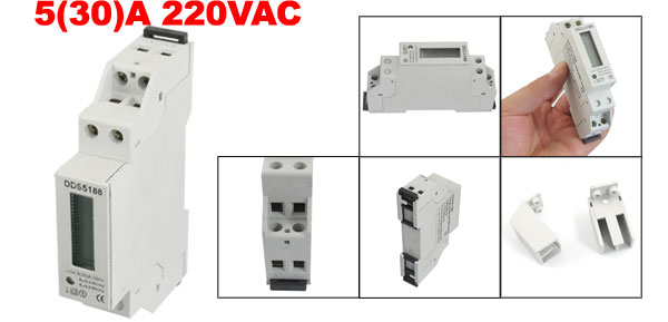 AC 220V 5(30)A 35mm DIN-Rail LCD Indicator Light Kilowatt Hour Energy Meter