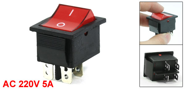 Product Name Rocker Switch Poles DPDT(I/O) Terminals 4 Pin Rated AC 220V 5A 50Hz Total Size 31 x 25 x 3.5mm / 1.2" x 1" x 1.4"(L*W*T) Mounting Size 28 x 21mm / 1.1" x 0.8"(L*W) Color Black, Red Material Plastic, Metal Net Weight 10g Package Content 1 x Rocker Switch - Reviews