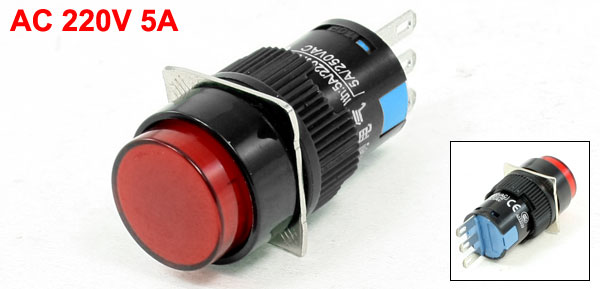 Item Name Push Button Switch Type Red Momentary Button Contact Type SPDT, 1NO 1NC 1Com Working Voltage Current AC 220V 5A