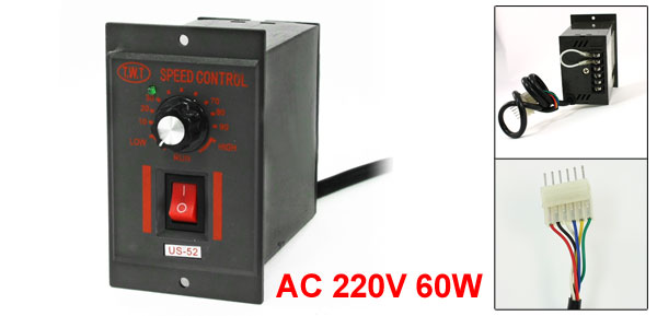 Product Name Motor Speed Controller Model US52-60W Material Plastic, Electrical Material Connector Type 6 Pins Rated Value AC 220V, 50HZ Power 60W Size 10 x 5.9 x 9.8cm/3.9'' x 2.3'' x 3.9'' (L*W*H) Cable Length 50cm/20'' Color Gray Net Weight 214g Package Content 1 x Motor Speed Controller - Reviews