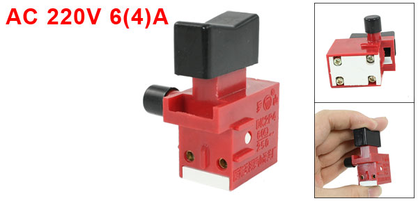 Product Name Trigger Switch Model No. DK2P4-6(4) Contact Type DPST, NO Action Type Lock On Rating AC 220V 6(4)A Size 3.3 x 3 x 4.7cm/ 1.3" x 1.1" x 1.85" (L*W*H) Material Plastic, Matel Color Black, Red Weight 20g Package 1 x Trigger Switch - Reviews