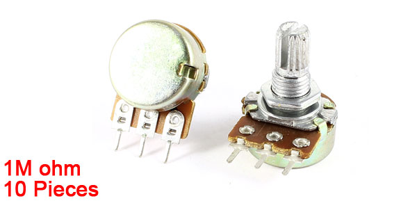 Product Name Potentiometer Resistance Value 1M ohm Power AC 220V 6A Adjustment Type Top Adjustment Type Single Linear(Type B) Features Knurled Shaft Shaft Diameter 6mm / 0.2" Shaft Length 8mm / 0.3" Mounting Thread Diameter 7mm / 0.3" Base Size 16 x 8mm / 0.63" x 0.31"(D*H) Total Height 24mm/0.94" Material Metal, Electronic Parts,Carbon Film Net Weight 64g Package 10 x Potentiometer - Reviews
