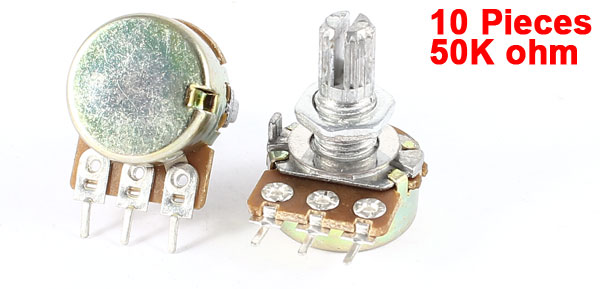 Product Name Potentiometer Resistance Value 50K ohm Power AC 220V 6A Adjustment Type Top Adjustment Type Single Linear(Type B) Features Knurled Shaft Shaft Diameter 6mm / 0.2" Shaft Length 8mm / 0.31" Mounting Thread Diameter 6.6mm / 0.26" Base Size 16 x 8.5mm / 0.63" x 0.33"(D*H) Total Height 24mm/0.94" Material Metal, Electronic Parts,Carbon Film Net Weight 65g Package 10 x Potentiometer - Reviews