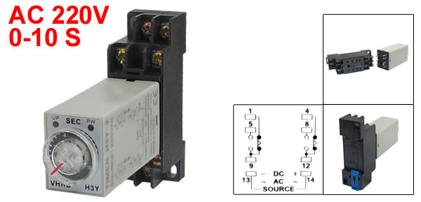 AC 220V 8 Pins DPDT 0-10Seconds Timer Delay Time Relay H3Y-2 w Base Socket