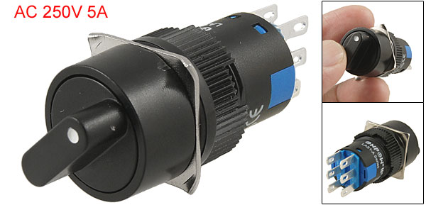 Item Name Push Button Switch Type Rotary Selector Type Voltage AC 250V 5A Ith AC 220V 5A Button Color Black Button Diameter 1.5cm/ 0.6" Size 4.5 x 1.8 x 1.8cm / 1.8" x 0.7" x 0.7" (L*W*T) Material Plastic, Metal Net Weight 8g Package Content 1 x Push Button Switch - Reviews