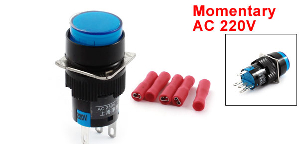 AC 220V Blue Light Panel SPDT Monmentary Pushbutton Switch w Wiring Terminals