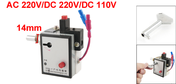 Product Name Indoor Electromagnetic Lock Model DSN-Y Rated Voltage AC 220V/DC 220V/DC 110V Rated Current 100mA/196mA/98mA Rated Power <3VA/<50W/<12W Thread Specification M14 M16 Air Temperature -10C-40C Ambient Humidity <95% Latch Stroke 14mm Total Size 96.7 x 90 x 48.8mm/3.81" x 3.54" x 1.92"(L*W*T) Wire Length 9cm/3.54" Material Metal, Plastic Main Color Silver Tone Net Weight 332g Package 1 x Indoor Electromagnetic Lock