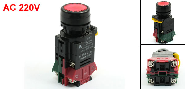 AC 220V DPST NO NC Momentary Red Round Push Button Pushbutton Switch