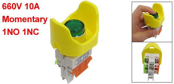 AC 220V Green Illuminated Lamp Momentary 1NO 1NC Ingot Shape Push Button Switch