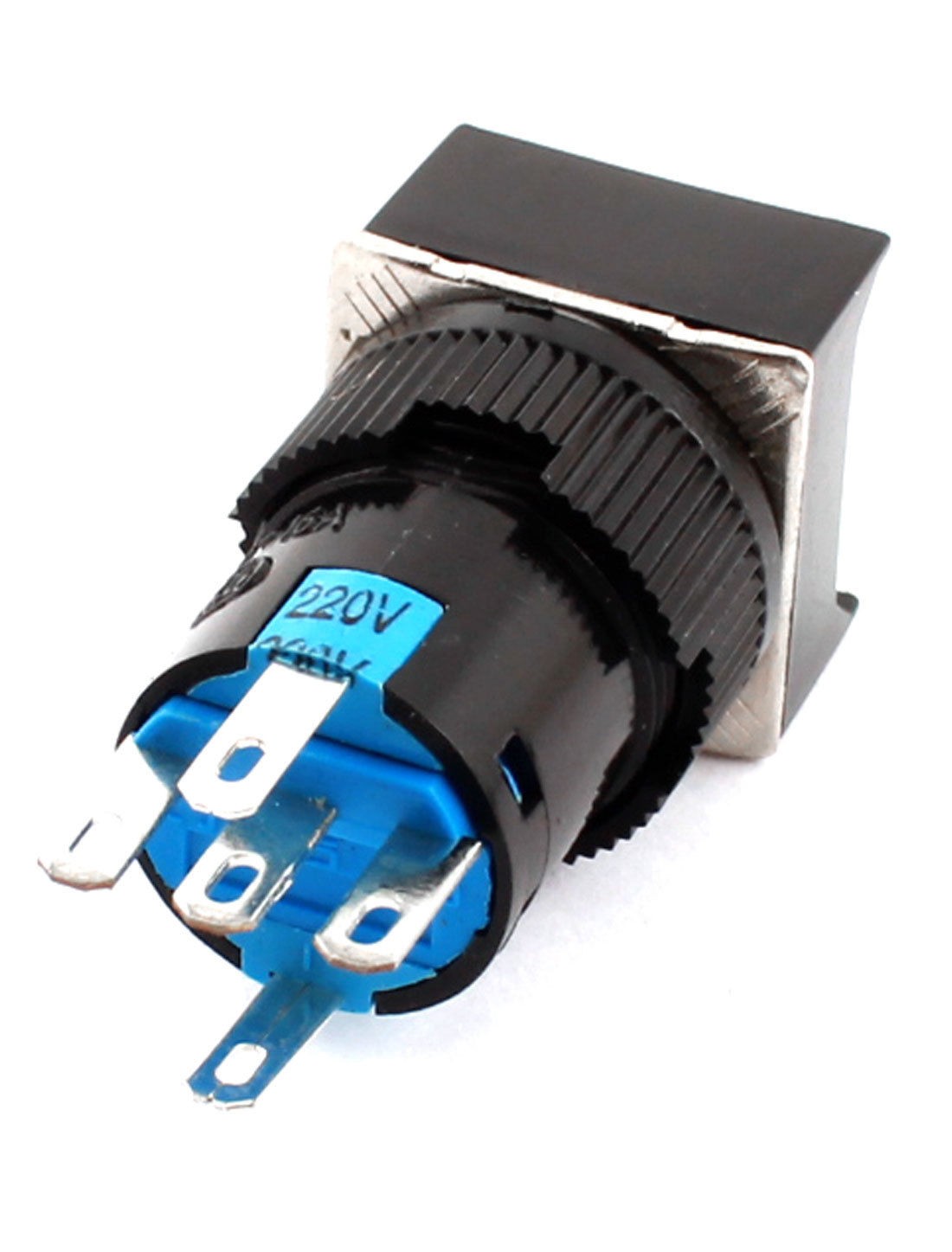 Item Name Square Head Push Button Switch w Crimp Connector Model LA160-16A Contact Type SPDT(1NO 1NC) Action Type Latching Pin Number 5 Voltage, Current AC 250V 5A Light Voltage AC 220V Thread Dia 16mm/0.63" Total Size(Not Included Pin) 31 x 17 x 17mm /1.2" x 0.67" x 0.67" (L *W *H) Light Color Green External Color Red, Green, Black Material Plastic, Metal Net Weight 11g Package Content 1 x Square Head Push Button Switch