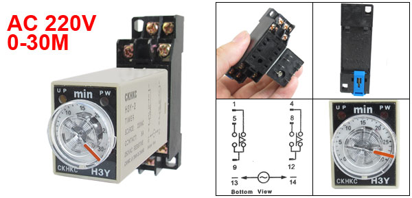AC 220V H3Y-2 0-30 Minutes 30Min DPDT 8 Pins Power on Time Delay Relay w Socket