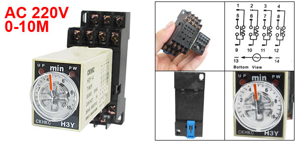 AC 220V H3Y-4 0-10 Minutes 10Min 4PDT 14 Pins Power on Time Delay Relay w Socket