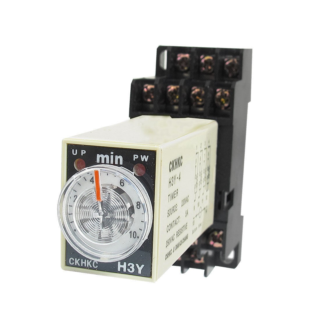 Product Name Time Relay + Socket Type H3Y-4 Contact Type 4PDT Source AC 220V Contact 5A 250VAC Resistive Load Time Range 0-10 Minutes Number of Terminals 14 Mount Rail Type 3.5mm DIN Rail Fixing Mount Hole Size 6 x 4mm/ 2.4" x 0.15"(L*W) Fixing Mount Center Hole Distance 59 x 22mm/2.3" x 0.9"(L*W) Total Size (Approx.) 68 x 29 x 88mm/ 2.7" x 1.1" x 3.5"(L*W*H) Color Black, Gray Net Weight 85g Package Content 1 x Time Relay