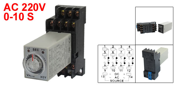 AC 220V H3Y-4 0-10S 4PDT 14 Pins Power on Time Delay Relay w Socket