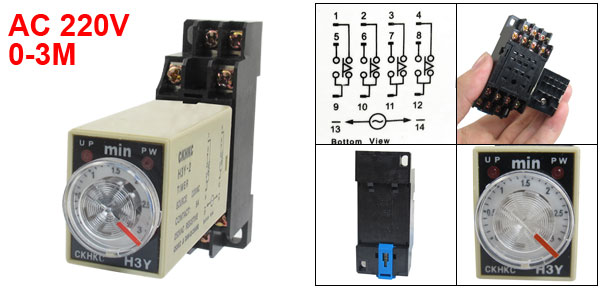 AC 220V H3Y-4 0-3 Minutes 4PDT 14 Pins Power on Time Delay Relay w Socket