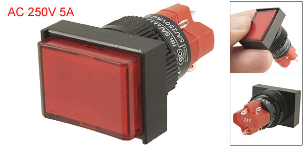 AC 220V Rectangle Red Button Momentary Contact Switch
