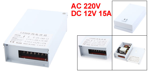Product Name Switching Power Supply Model FY-180-12 Input AC 220V +/-15%,50/60Hz Output DC 12V, 15A Power 180W Overall Size 19 x 11 x 5cm /7.5" x 4.3" x 2" (L*W*H) Case Material Metal Case Color Gray Net Weight 740g Package Content 1 x Switching Power Supply - Reviews
