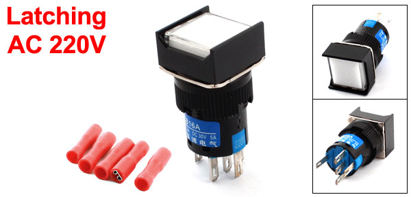 DC 30V 5ALight Voltage AC 220V Thread Dia 16mm/0.63" Total Size(Not Included Pin) 31 x 17 x 17mm /1.2" x 0.67" x 0.67" (L *W *H) Light Color White External Color Red, White, Black Material Plastic, Metal Net Weight 11g Package Content 1 x Square Head Push Button Switch