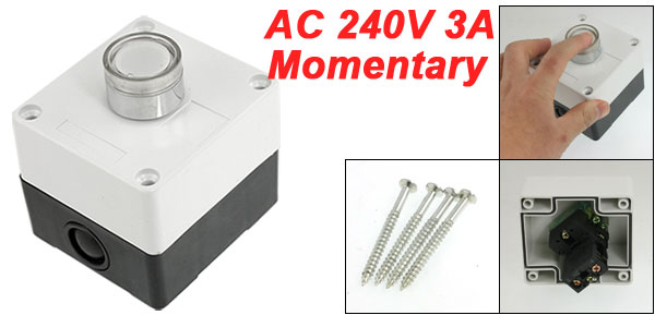 AC 220V White Signal Lamp NO Momentary Push Button Switch Station AC 240V 3A